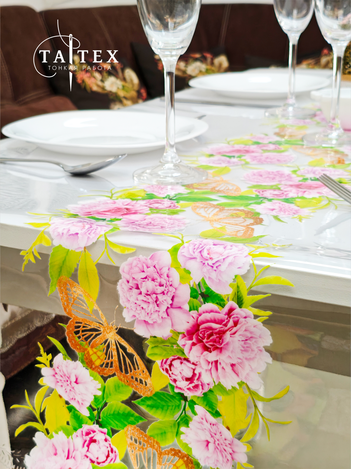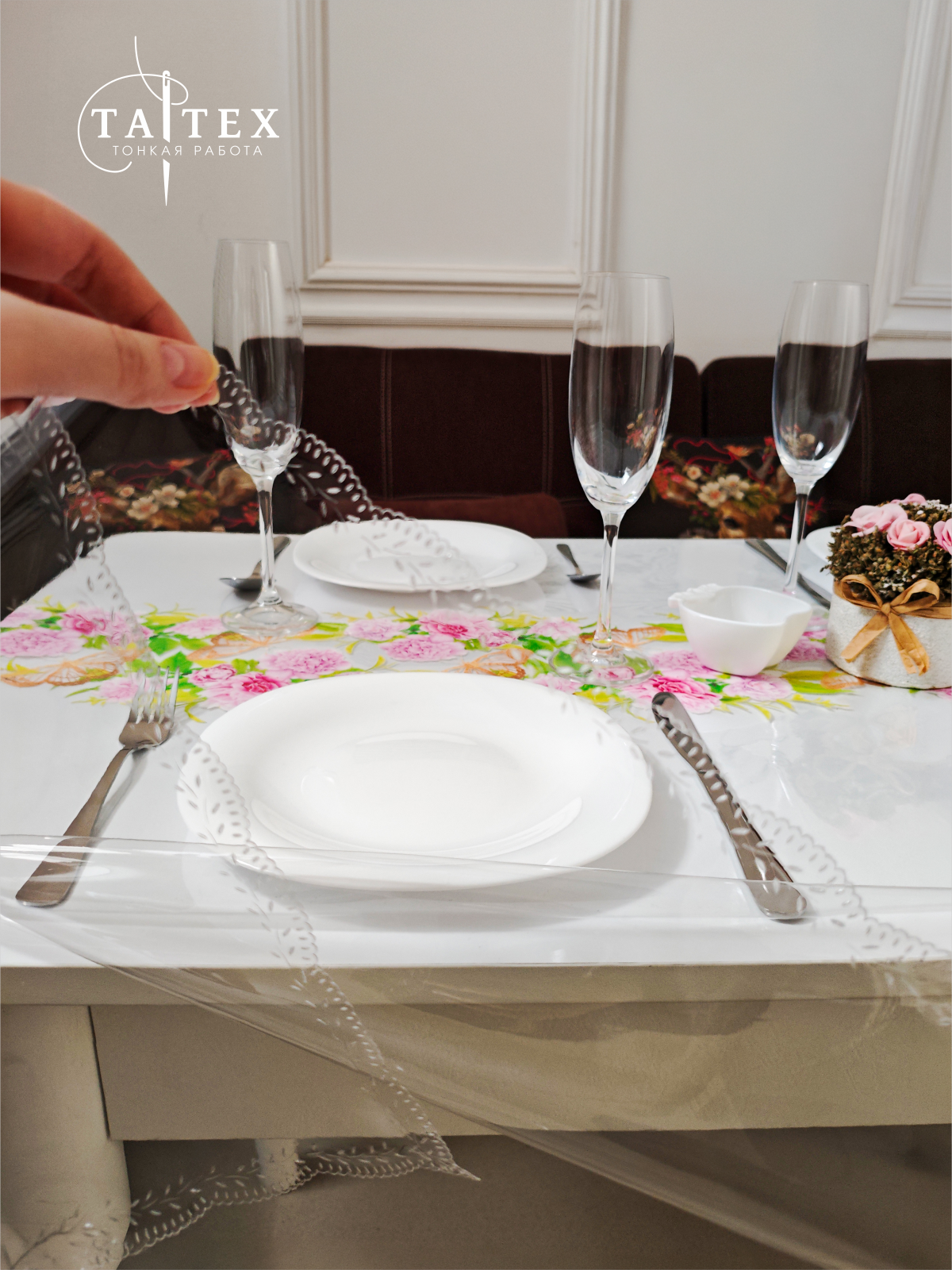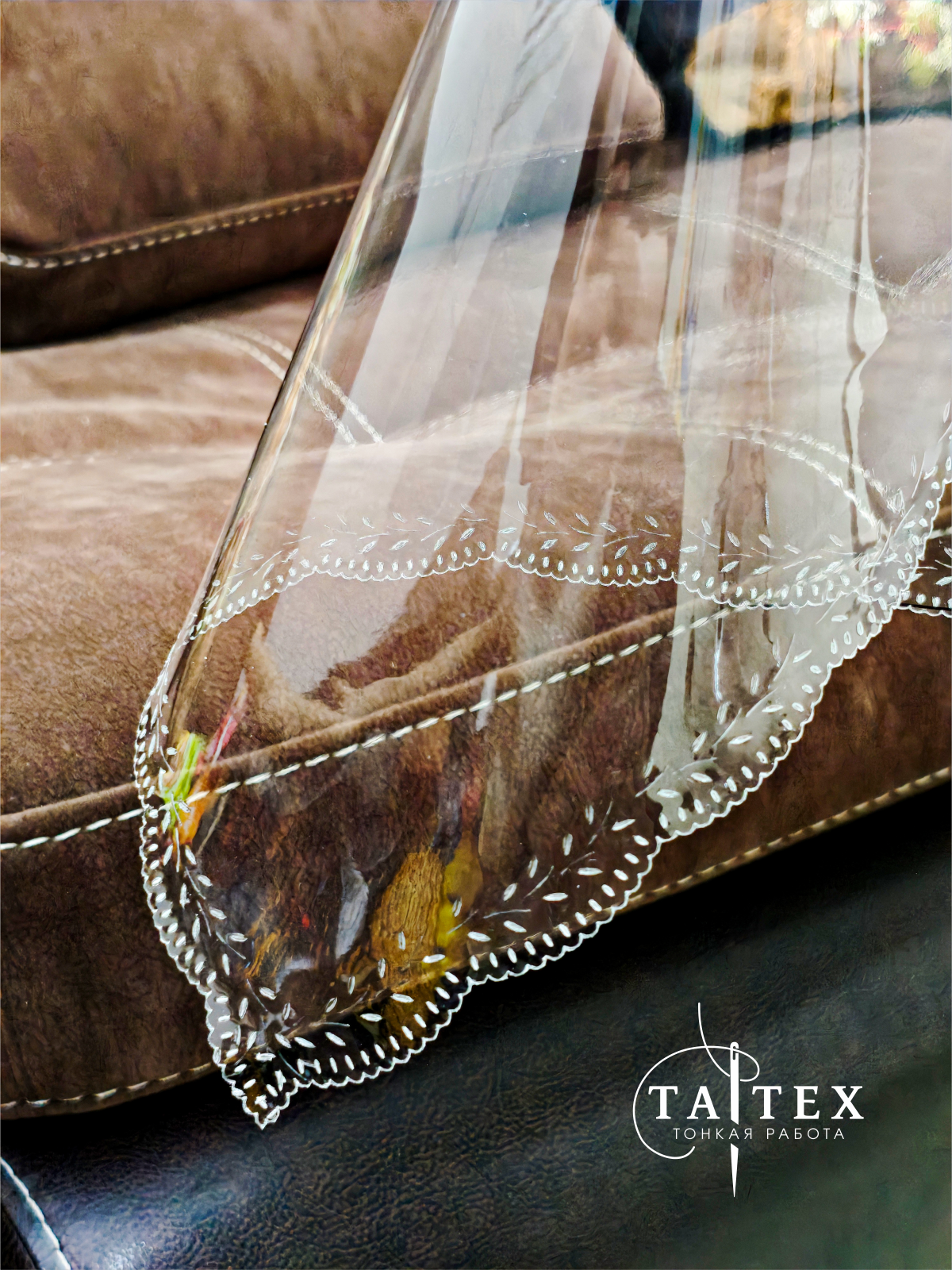Гибкое стекло, скатерть пр-ая с пробивной каймой 140х110 см (пр-ник), толщина 0,4 мм ПЕЧАТЬ flow