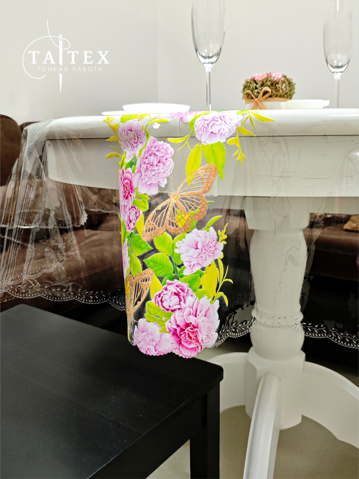 Гибкое стекло, скатерть пр-ая с пробивной каймой 140х170 см (овал), толщина 0,4 мм ПЕЧАТЬ flow
