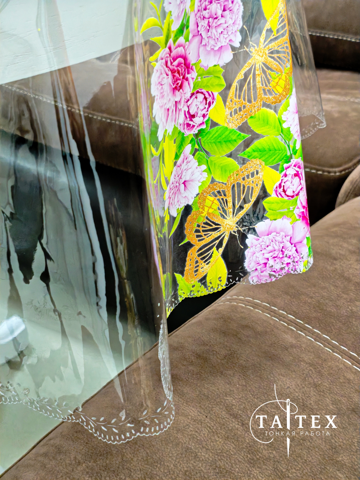 Гибкое стекло, скатерть пр-ая с пробивной каймой 140х200 см (овал), толщина 0,4 мм ПЕЧАТЬ flow