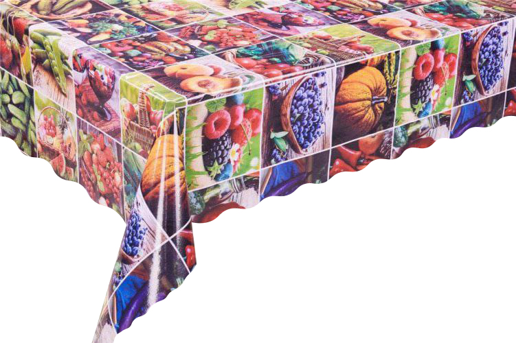 WF-2129A Скатерть ПВХ коллекция "УЮТ" на нетканой основе 125*110см с волнистой каймой